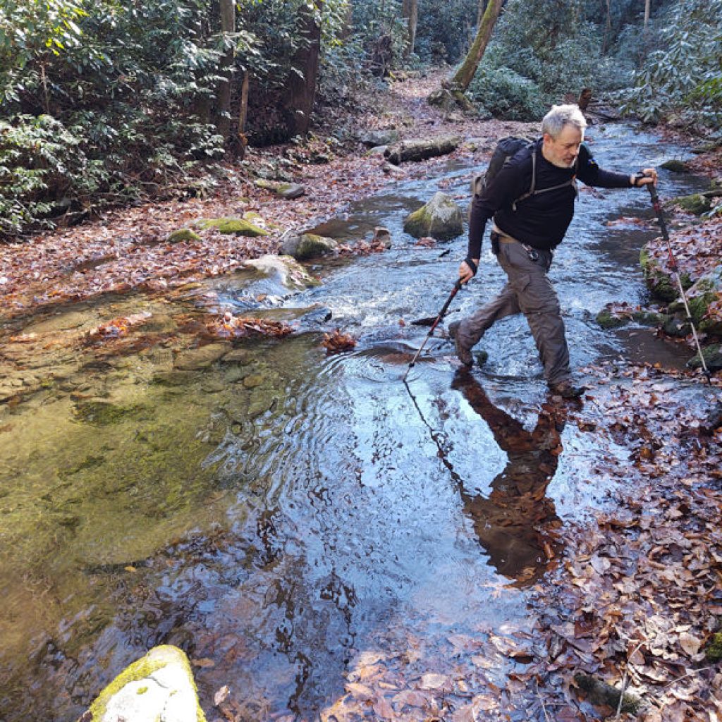 The wilderness of Citico is unmarked. Occasionally there may dangle a derelict sign but no such luck for Brush Mountain on this day. I did notice a piece of red tape attached to a tree on the opposite side of the creek. This jived with my reading of an antiquated paper map. I had a faint idea who may have left that tape. There’s another legend that cruises around these parts. His name is Tipi Walter.