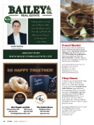 Justin Bailey PRINCIPLE BROKERValuing people over pro t may not ll your wallet, but it will ll your heart. And only a full heart will allow you to do this job for the long haul.- Justin Bailey(865)947-9000WWW.BAILEYCOREALESTATE.COM64 JANUARY FEBRUARY 2017French MarketFrench cuisine with a healthy twist is what you’ll nd at Knoxville’s French Market. Try the Vegetarian Goat Cheese & Walnuts with artichoke hearts or a side of French Fig Jam on Buckwheat. Want to spice things up? Order theSpicy Vegetarian— hummus, spinach, avocado, sweet red pepper, feta cheese & Sriracha aioli on buckwheat.526 South Gay Street; 865-540-4372/ 161 Brooklawn St.; 865-288-7912 Mon-Weds: 8 a.m.-4 p.m.Thurs-Sat: 8 a.m.-10 p.m.Sunday Brunch: 9 a.m.-4 p.m.thefrenchmarketknoxville.comChop HouseLooking for upscale dining with healthy options, too? Check out the Chop House at one of their three Knoxville locations and try their Teriyaki-Glazed Grilled Chicken topped with fresh honey pineapple relish over rice pilaf and a side of Steamed Broccoli. Want something green? Order the Sliced Tenderloin Salad with blue cheese, diced tomato, and onion. Want tomake it gluten free? Request it without seasoning or croutons, or ask to see their gluten-free menu.7417 Chapman Highway; 865-579-2609/ 4870 Harvest Mill Way; 865-687-1330/9700 Kingston Pike; 865-531-2467 Sun-Thurs: 11 a.m.-10 p.m.Fri-Sat: 11 a.m.- 11 p.m.thechophouse.com