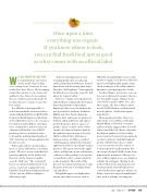 However, “organic” food production and labelling is regulated by the United States Department of Agriculture. Organic produce is grown without the use of pesticides, synthetic fertilizers, GMOs, and other harsh chemicals. Organic dairy and meats are produced without added antibiotics and added growth hormones. Before a piece of produce, meat, or dairy can be sold as organic, the farm or business must go through five rigorous steps to become USDA certified. First, the farm or business selects a USDA-accredited certifying agent, submits the standard application and fees, and adopts organic practices. The agent reviews the appli- cation, and then an on-site evaluation is conducted. After passing, every produc- er is audited yearly to ensure integrity to the standards. The result of this process? An organic label meant to take the guess work out of avoiding chemi- cals and fillers.