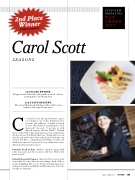 she’s comfortable with and experienced at competition, she doesn’t see Top Chefs that way: “being able to work side-by-side with some of the other best chefs in the city doesn’t feel like a competition; it felt like a really cool fundraiser I got to be a part of. It’s one of the most enjoy- able times I have had in years.”