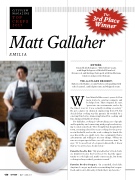 For Gallaher, cooking is “about taking care of people and hospitality and connecting with people and not try- ing to outdo somebody.” He’s brought that hospitality to town, returning after five years cooking for the gover- nor in Nashville and on the road cooking for bands. He sees Knoxville as a small, very close community that is adventurous and willing to try new things. “When we run an octopus special here, we sell out every time,” he says. “If I can sell out of octopus in Knoxville, I know that we’ve arrived as a foodie town.”