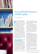 senior years just as the trajectory of our nation’s health care policy seems to be getting more confusing by the day. And reports tell us that we’re in for a massive shortage of general practice doctors. Yet, amid clouds of crisis, boomers appear to be thriving; they’re living longer, working longer, making (and spending) more money, staying active, and keeping up with the Joneses.