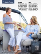 M.S. McClellan – Chambray off the shoulder blouse by Lafayette 148, $498; NYDJ white Alicia leggings, $114. Spex – Tom Ford Livia sunglasses, $415. Boyd Thomas Clothing – Uno de 50 pearl and silver In Orbit earrings, $145; silver and pearl pendant necklace, $295; “A Pearl of Wisdom” bracelet, $165. Folly Boutique – gray monogrammed shopper purse by Sweet Southern Creations, $47.