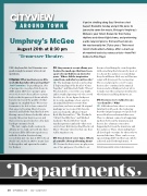 If you’re strolling along Gay Street on a hot August Knoxville Sunday and get the jones to jam out to some live music, Chicago’s Umphrey’s McGee is your ticket. Known for their funky rhythms and vibrant light shows, and performing a wide range of genres, the band has been on the road annually for 17-plus years. Their most recent studio album, Zonkey, o ers a mash-up of reworked tracks by various artists—from Phil Collins to Pink Floyd.
