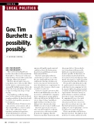 way of speaking and his generally lighthearted and informal manner mean it’s possible for Burchett to be underestimated, particularly by the more genteel strata of political geology. On the other hand, it could be the point of separation that makes the difference.